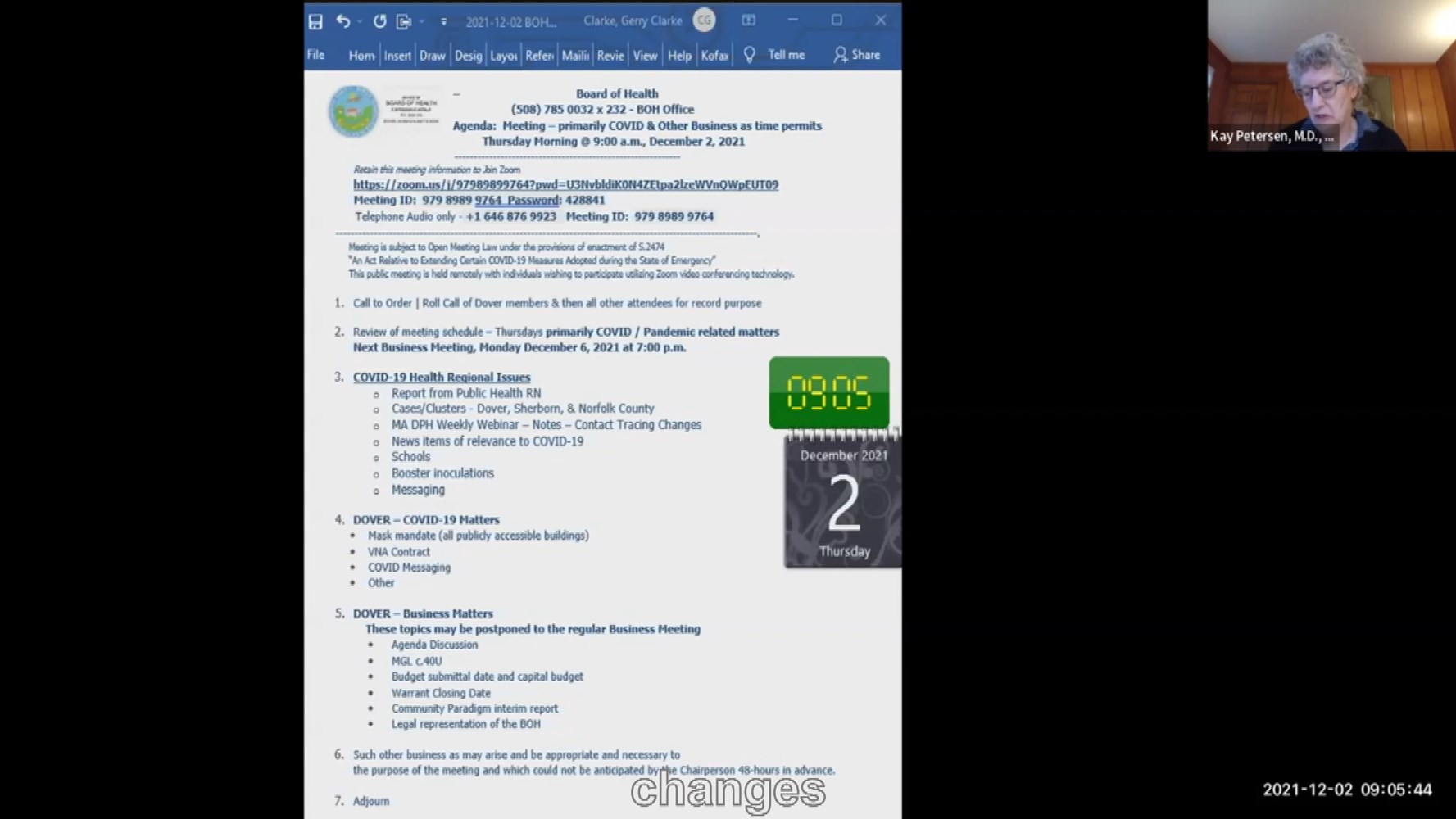 Dover Board Of Health Meeting of 12/2/2021